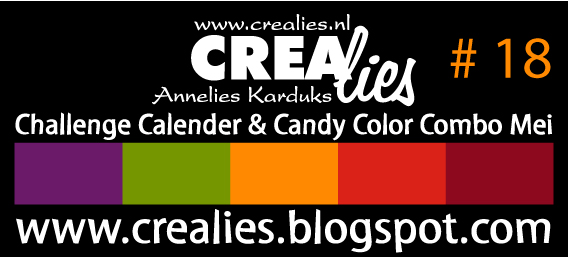 Het papier is van K and Co ook de sticker onderaan, het stempeltje van Nellie Snellen ingekleurd met distressmarkers, een stukje kant langs de bovenrand, een halve bloem van de open flowers en het tekststempeltje van Crealies, een taartrandje, een hulsttakje met een bradje van MM en de cone is klaar.